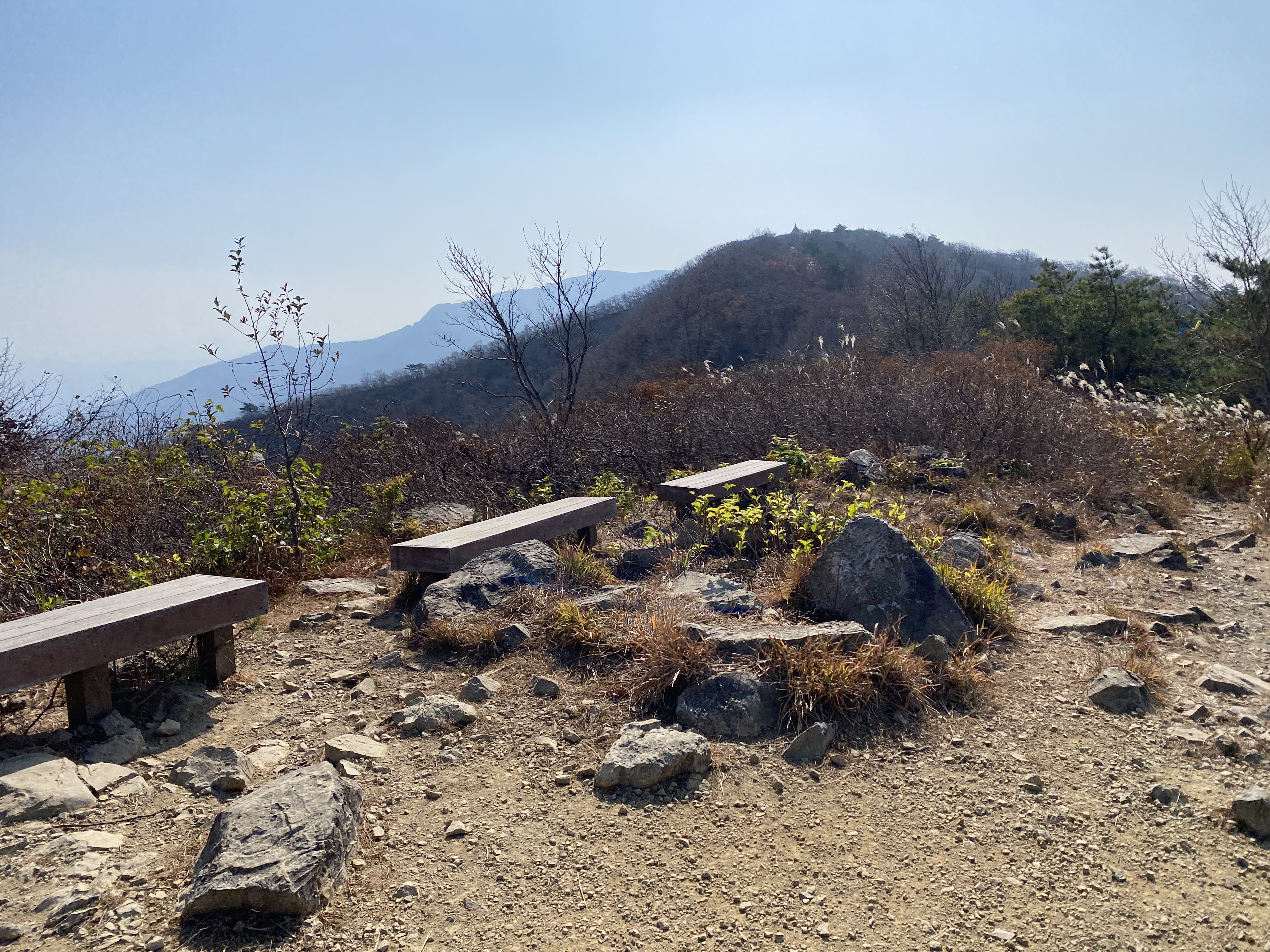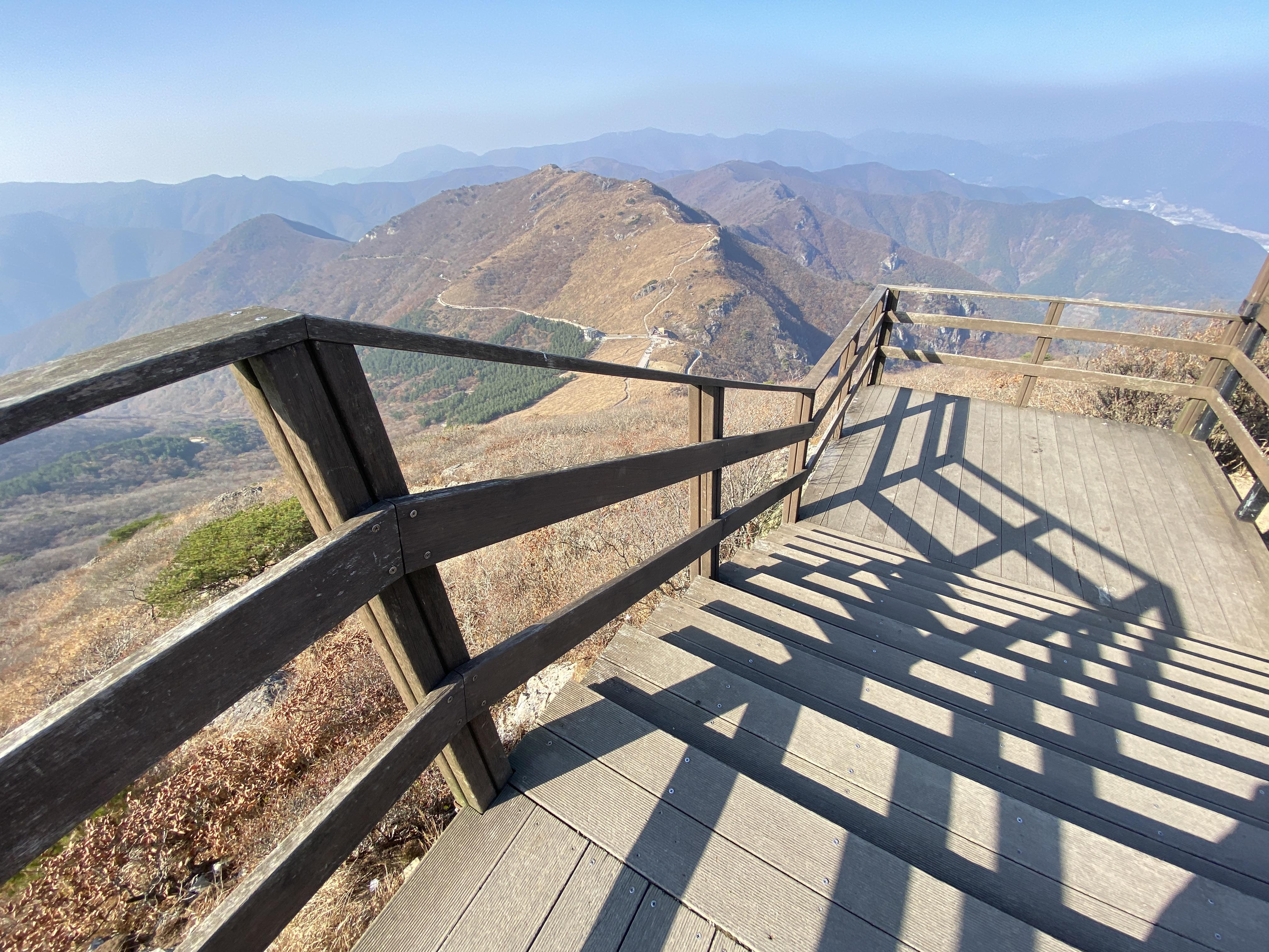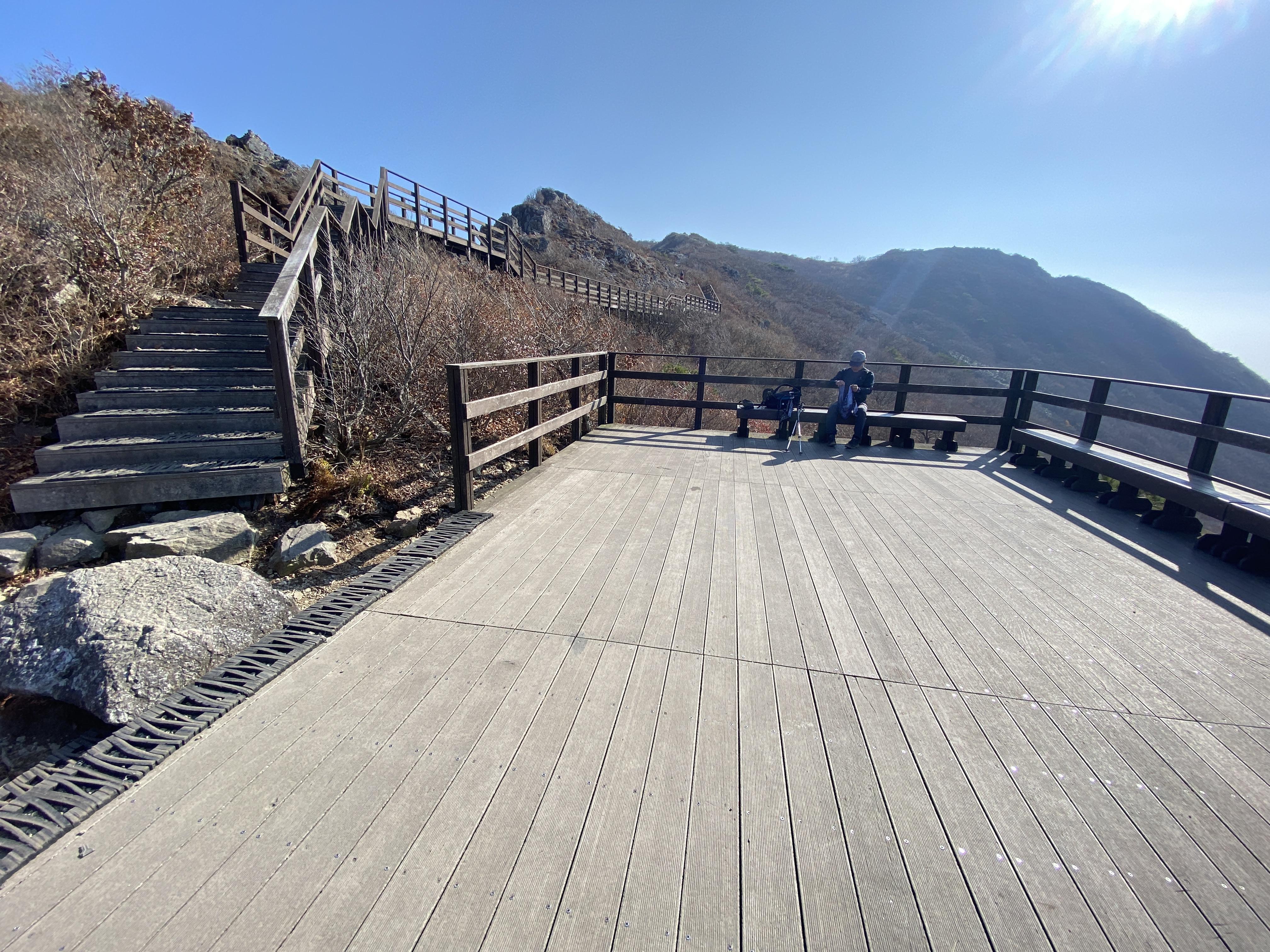고개를 넘어오니 영축산이 보이는 곳에 작은 데크가 2단으로 되어 있습니다.