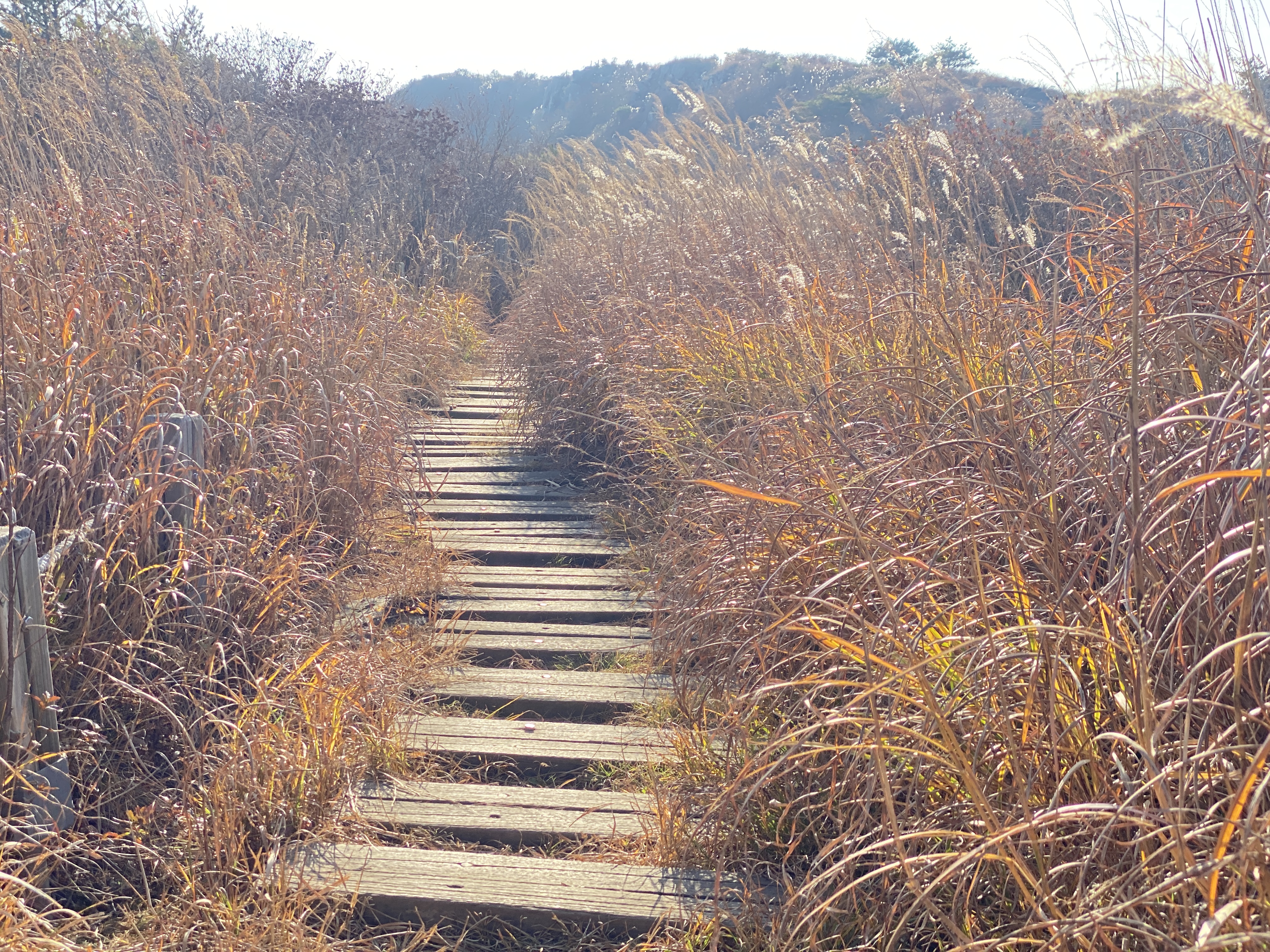 산을 넘어가는 바람이라고 억새가 많이 흩날립니다.