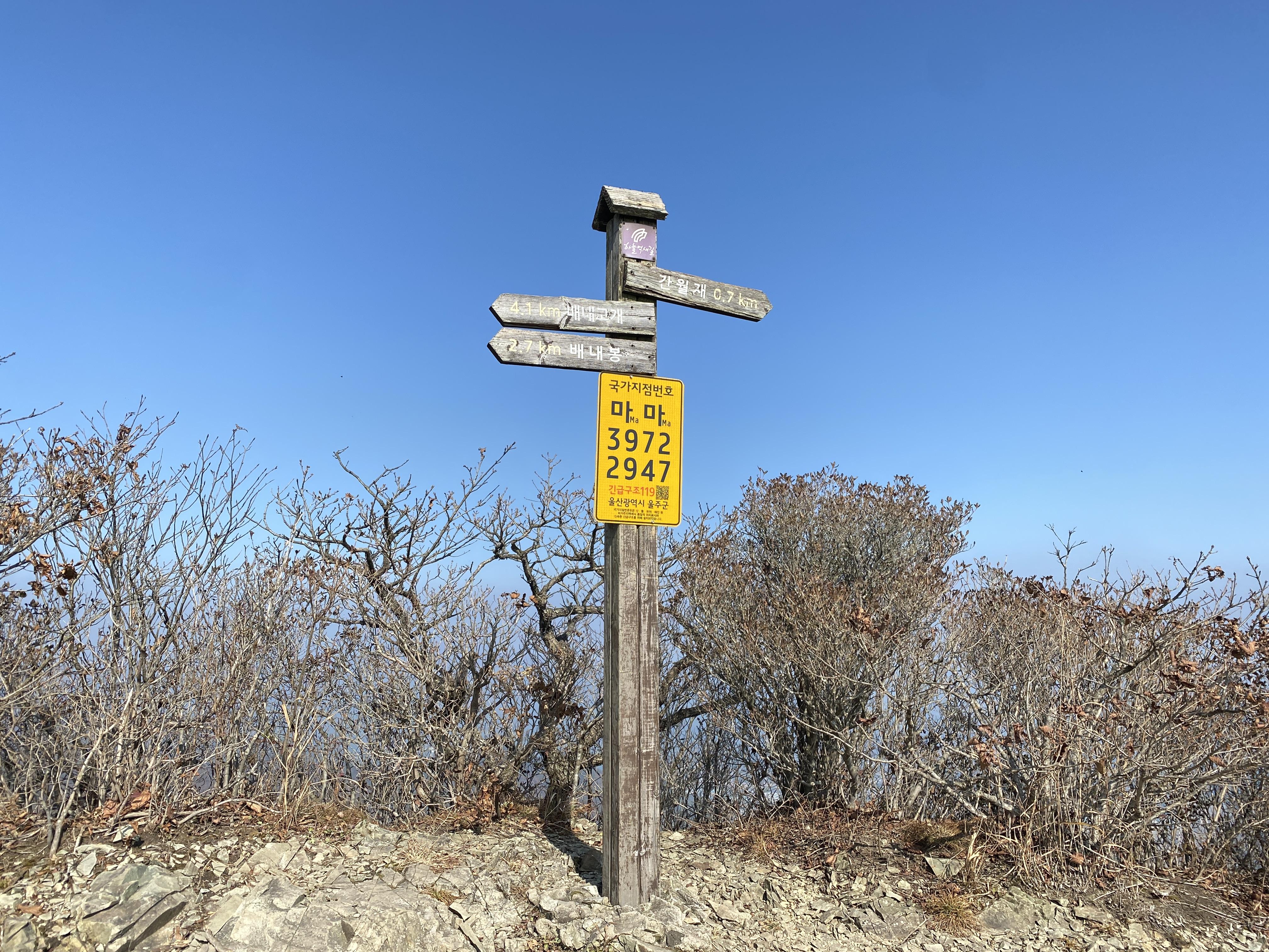 배내봉에 도착 > 다음 경로는 간월산입니다. (2km)
