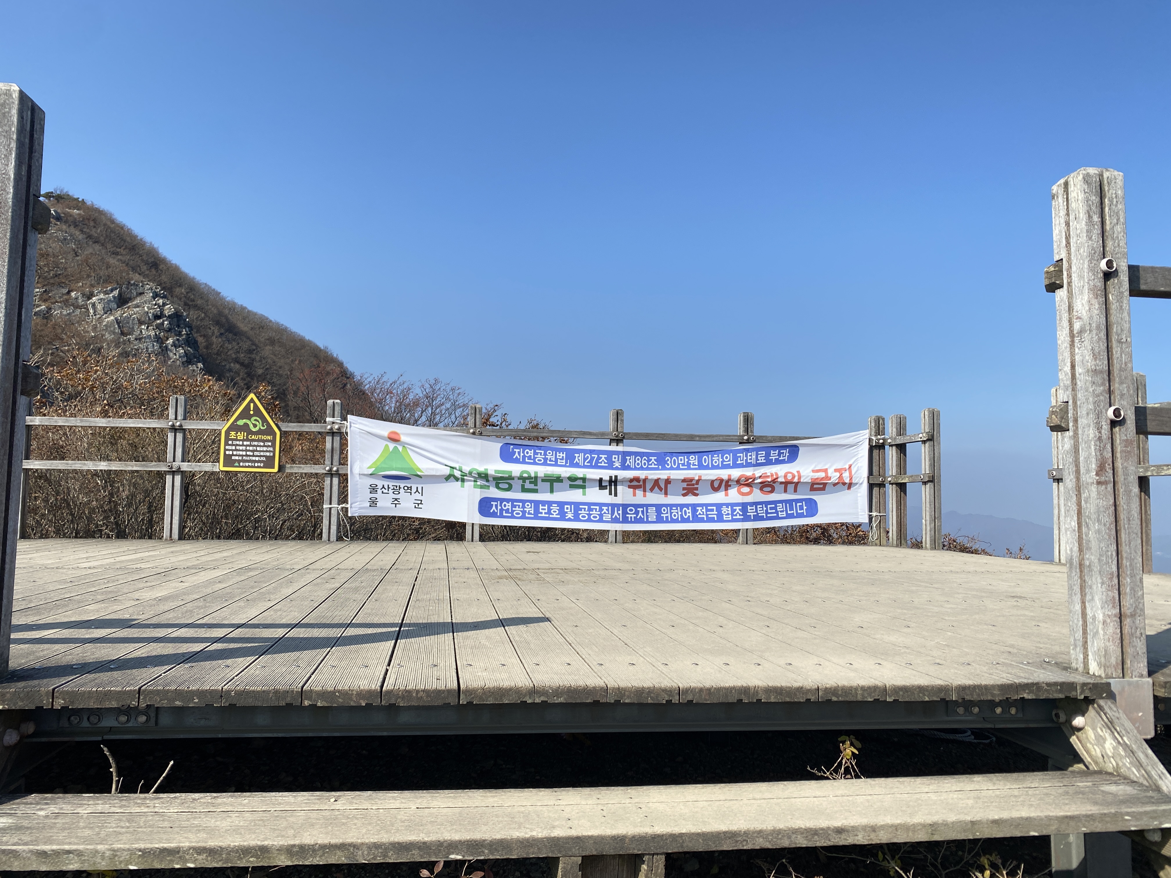 왼쪽으로 울주군이 보입니다. 데크가 오래 되지는 않아 보입니다만 위험해 보입니다.