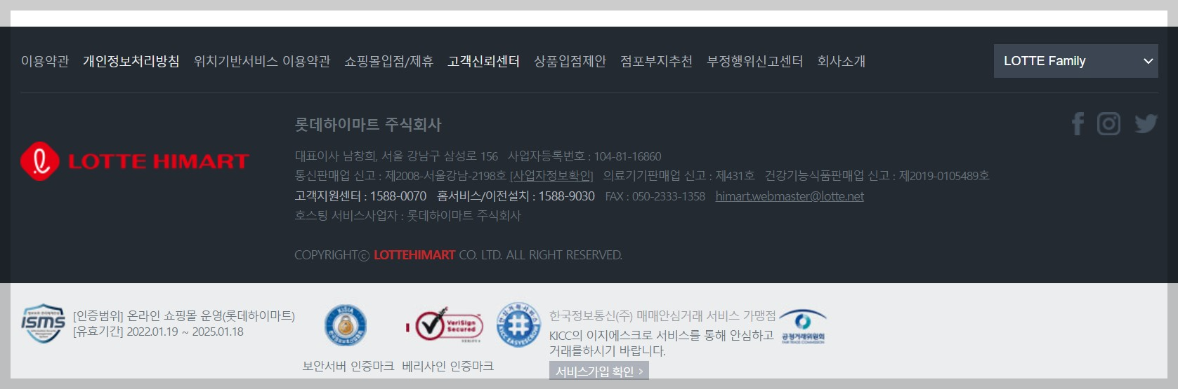 사기 사이트는 하이마트 사업자번호, 통신판매 신고 번호, 주소등을 도용 및 사용 중이였다.