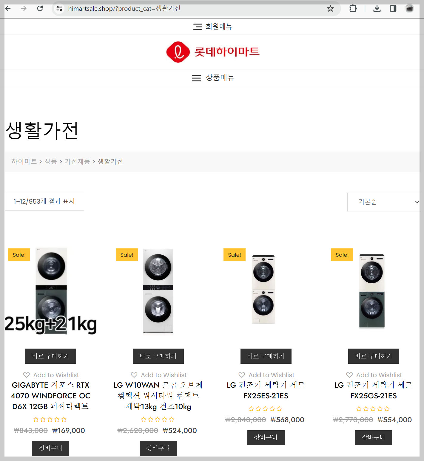 나는 URL 주소의 하이마트세일몰에서 대박 세일제품을 담기에 급급했다.