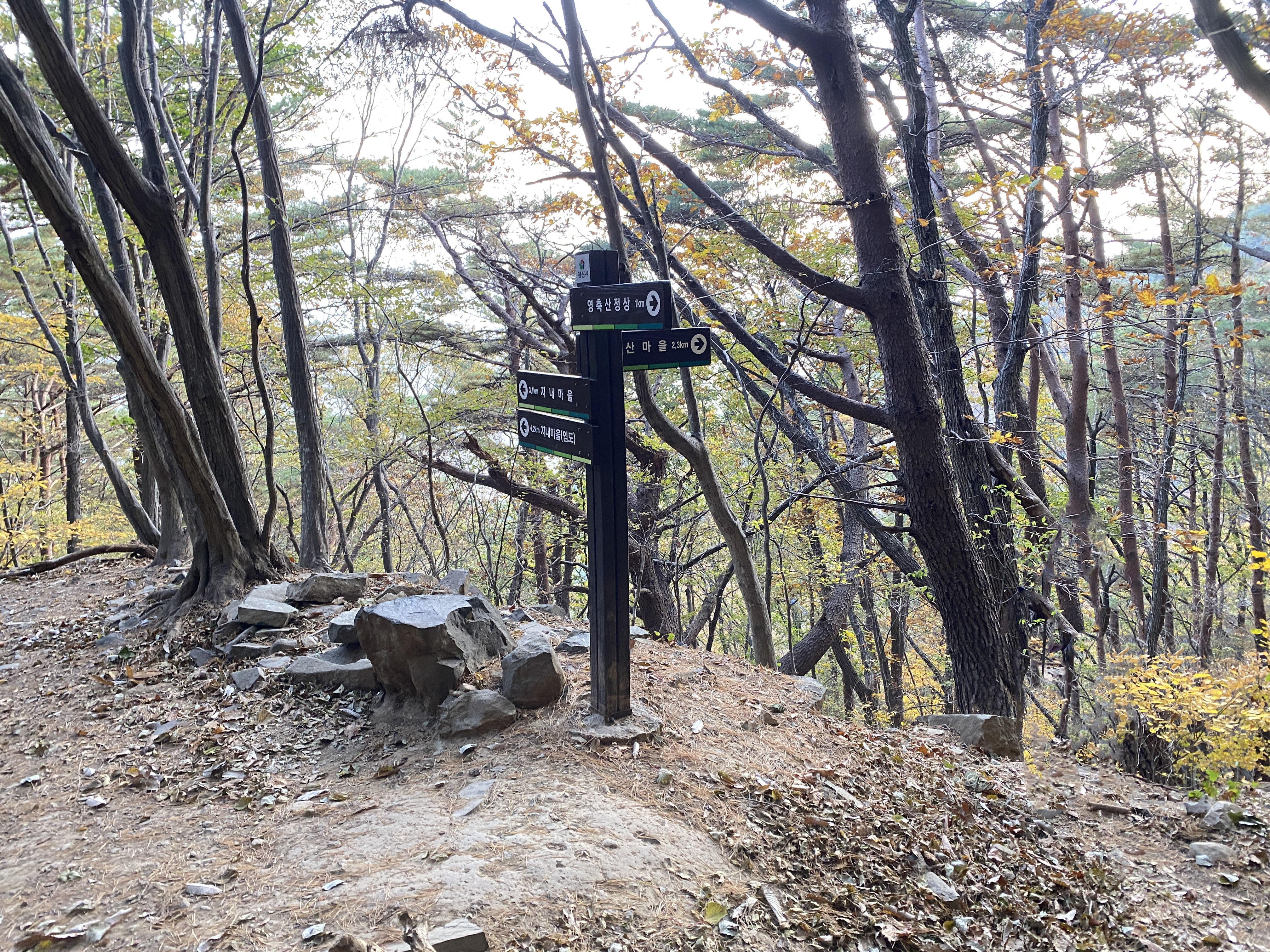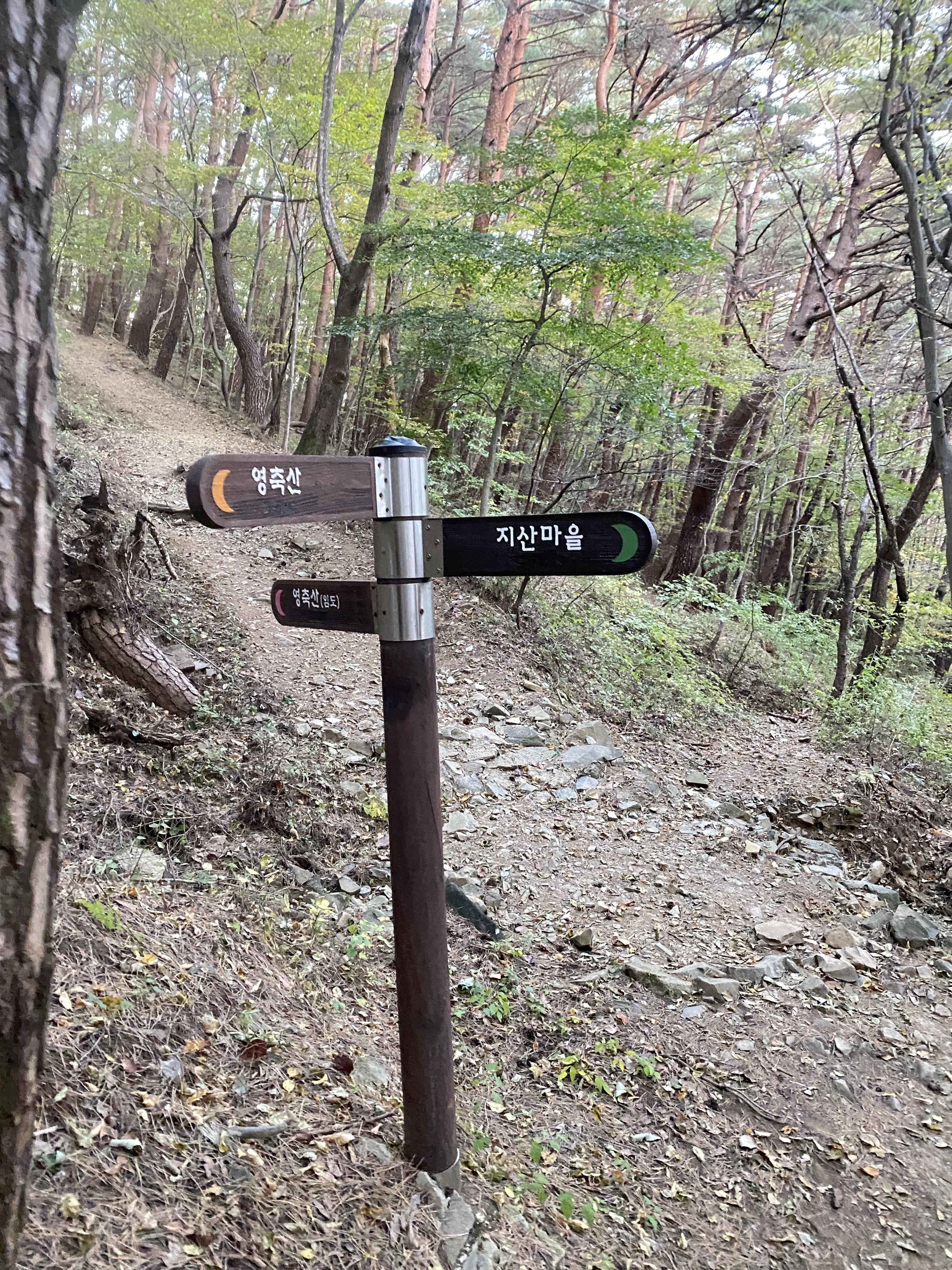 마지막 이정표 지산마을, 서리마을로 나뉩니다.