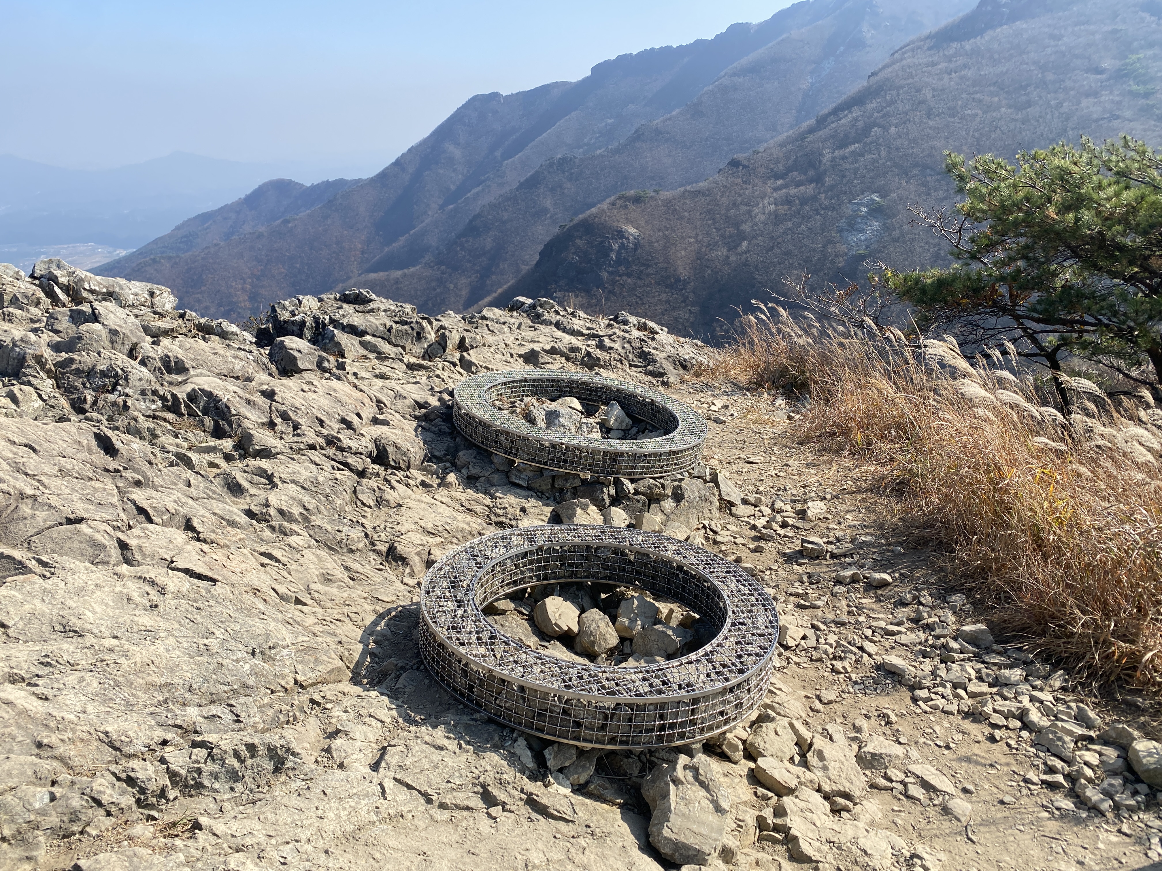 고개를 넘어오니 영축산이 보이는 곳에 작은 데크가 2단으로 되어 있습니다.
