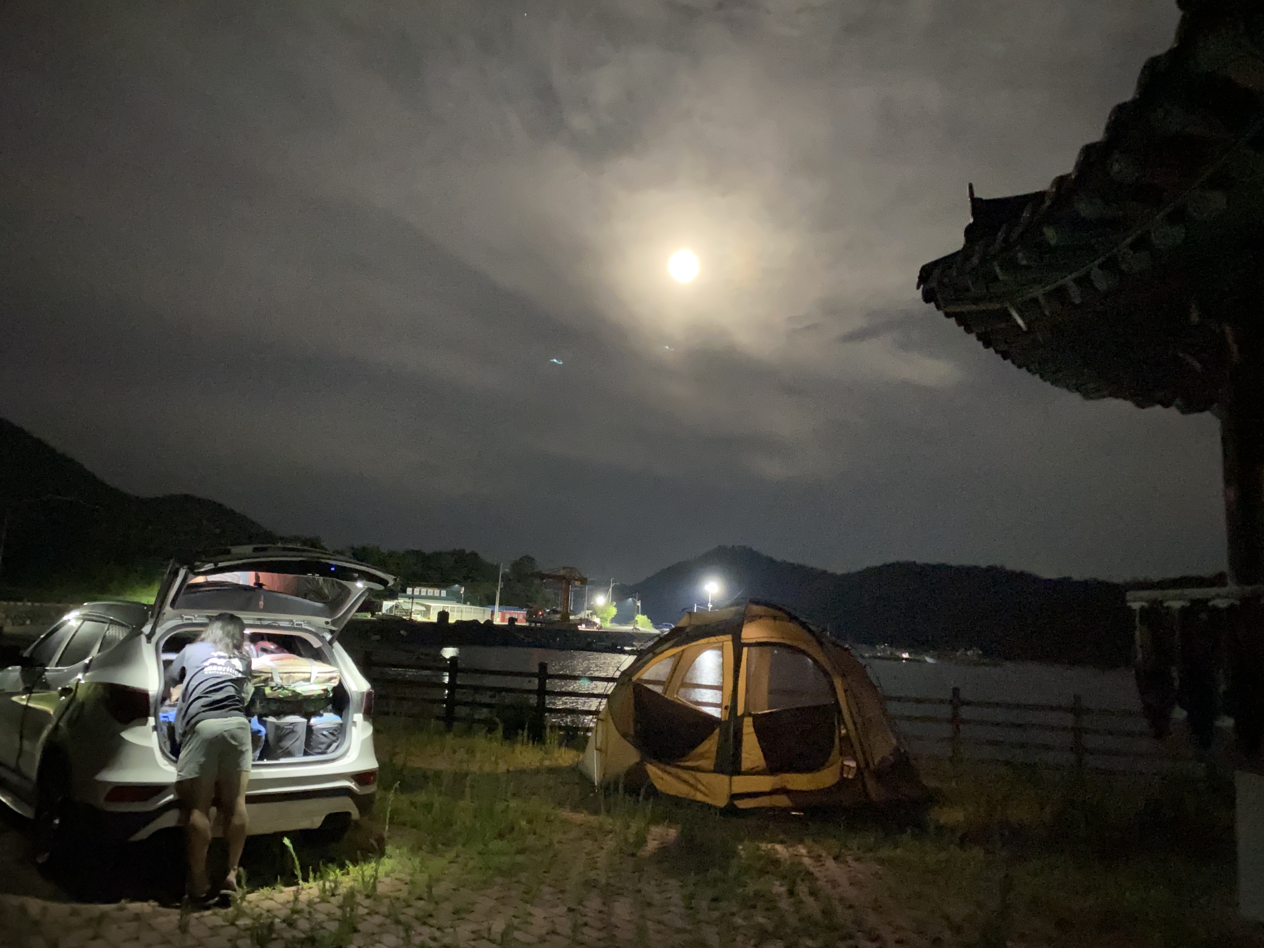 고성에서 한가한 시골길 공터에서 새우잠을 자고 아침일찍 입도를 할 예정입니다.