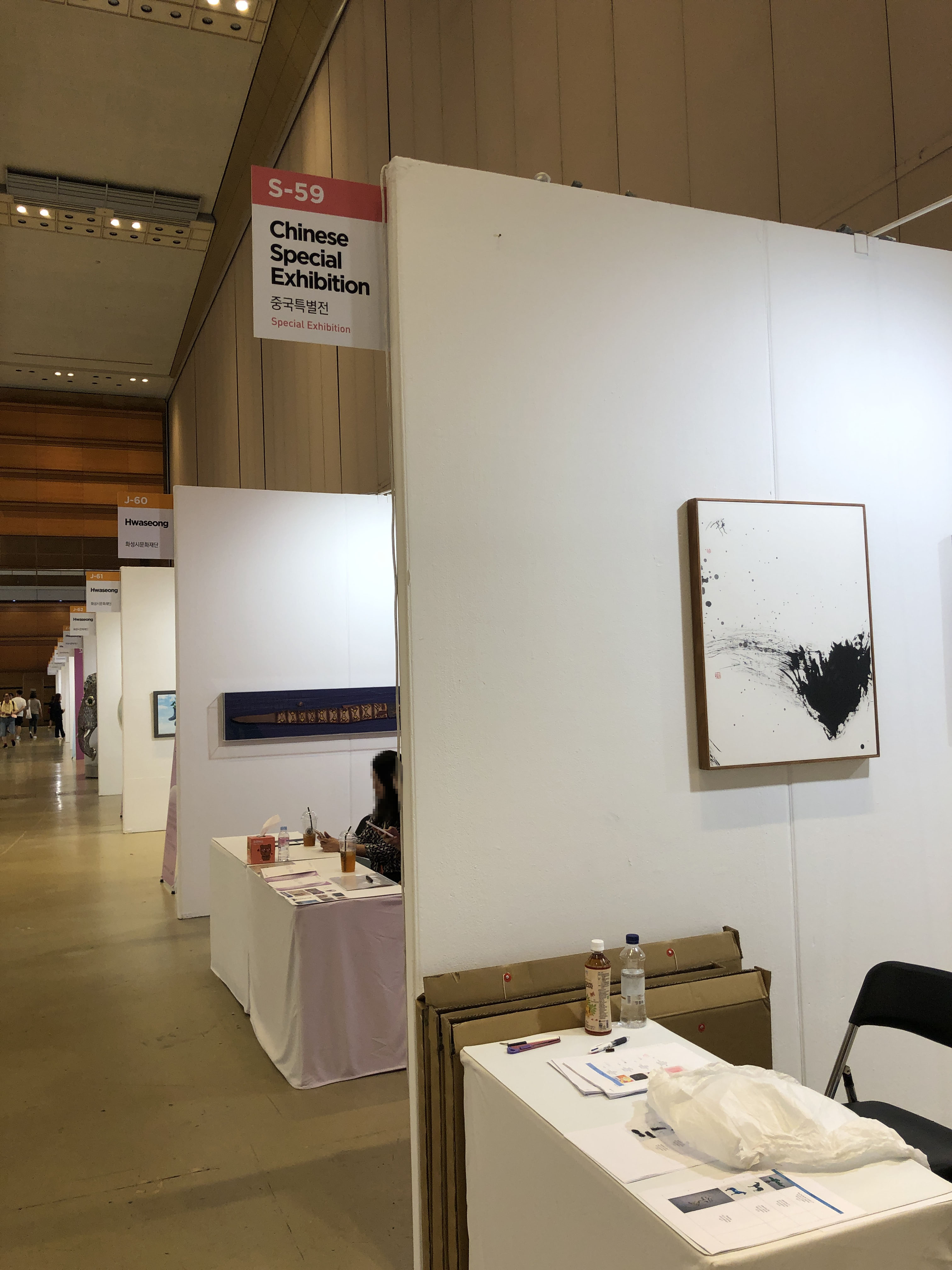 인파가 몰리기 시작하면 좁은 문과 통로 사이로 2명이 간신히 지나가는데, 자칫 잘못 해서 벽에 걸린 작품이 떨어지거나 파손이 간다면 보상 해야 하거나 작품 구입을 해야할 경우가 생깁니다. 저의 경우에도 에코팩을 갖고 다녔는데도 불구하고 가방을 잡고 좁은 틈 사이로 조심스럽게 다녀야만 무사히 작품을 지나갈 수 있는 경우가 많았어요.
